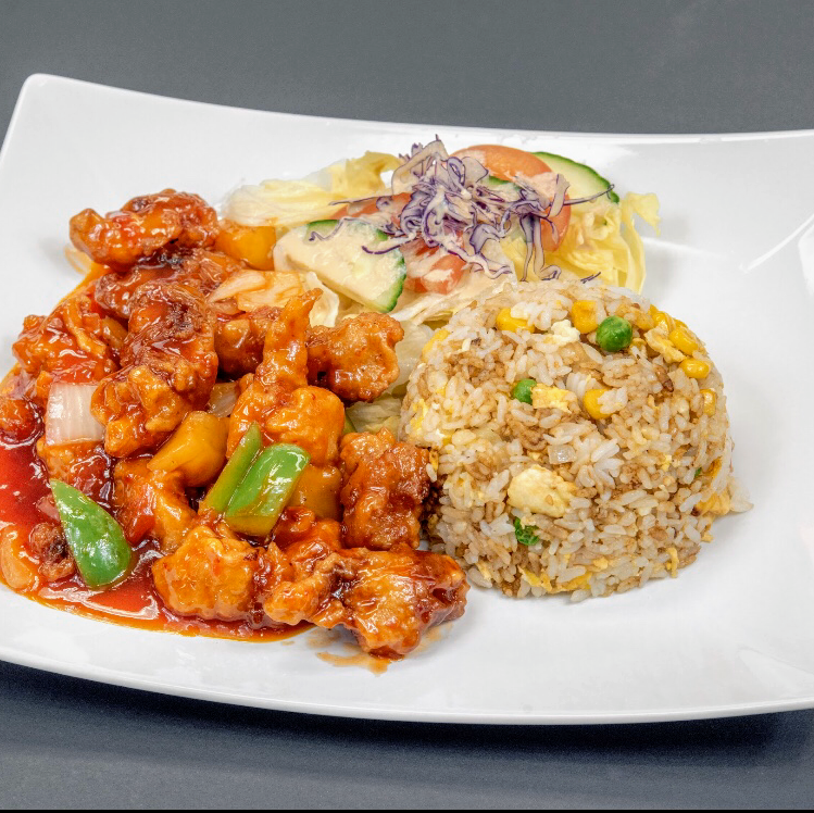 Additionally, for those seeking a bolder flavor experience, dive into the enticing Manchurian Beef or Crispy Beef with a Sweet & Spicy twist, which are served with rice and a side salad for a complete meal that’s both satisfying and hearty.